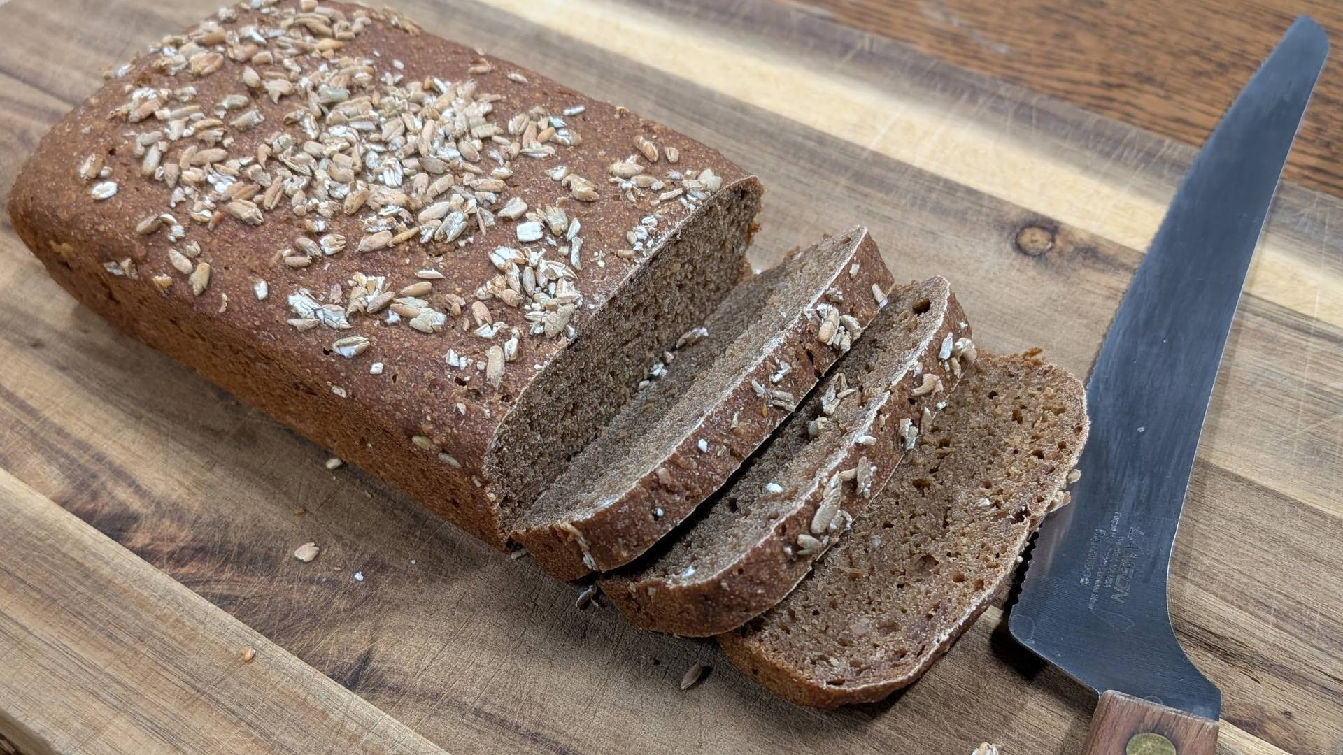 As it rests and rises, the rye develops into a loaf with deep flavor, helped along by a small amount of molasses that brings warmth and richness without sweetness. The finished loaf has a dense yet tender structure and a beautifully moist crumb - hearty, earthy, and incredibly satisfying.
