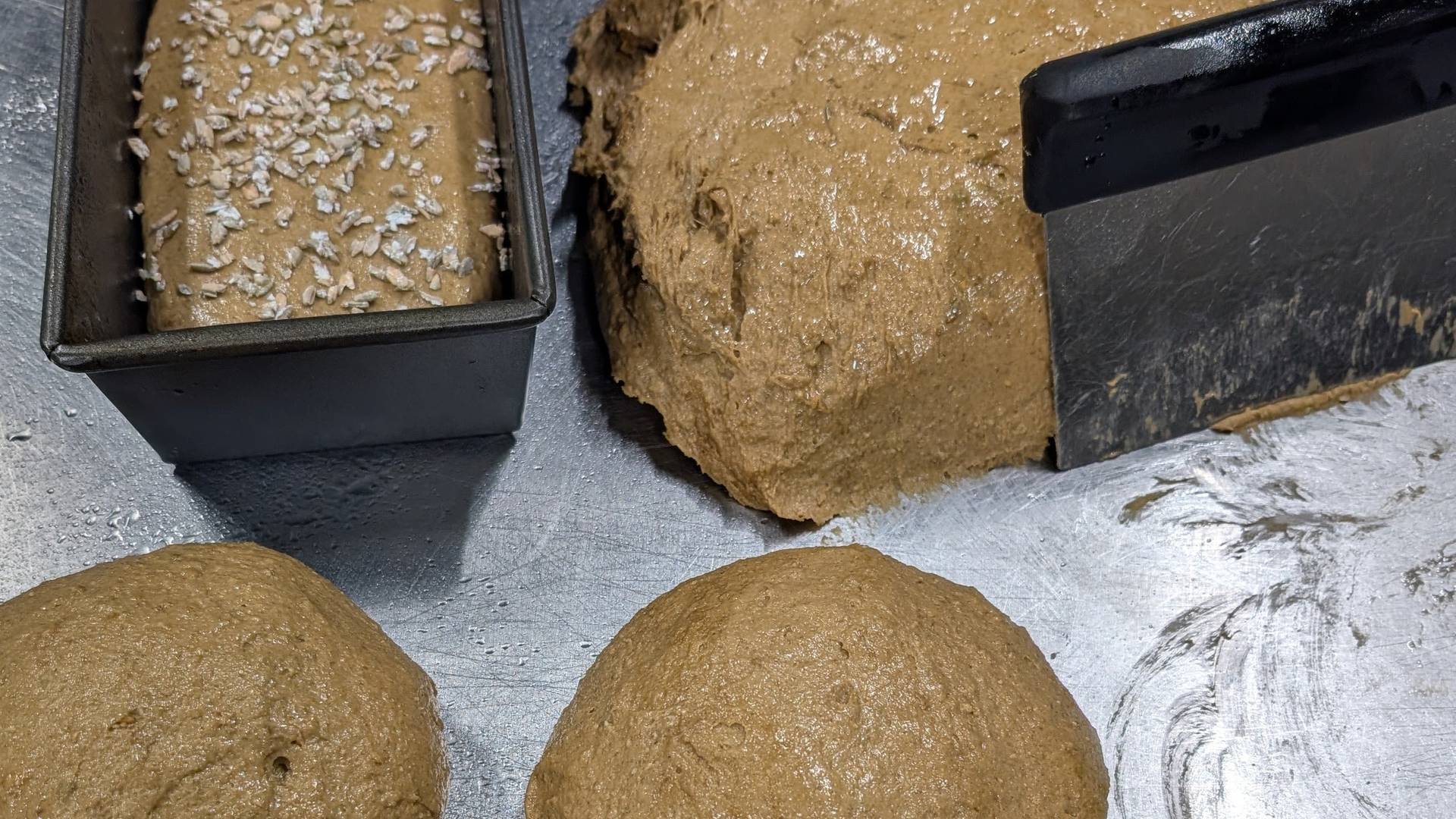 Wednesday’s 100% Whole Grain Organic Dark Rye Loaf: The dough doesn’t look like much at first glance. It’s dark, thick, and a little mucky - very different from lighter wheat doughs. But with time, patience, and a slow ferment, something special happens.